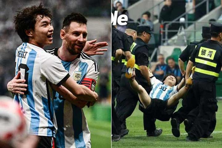 Argentina is currently touring Asia and they faced Australia in their first International Friendly fixture at Beijing, China, beating them 2-0. Lionel Messi featured in that match scoring his fastest goal in International career and also showed glimpses of his skills. Amidst this a teenage Chinese fan enters the pitch by invading and hugged the Argentina star. He was taken away by the security immediately.