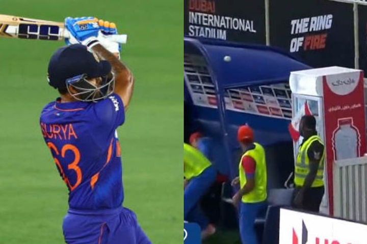 Suryakumar Yadav's six lands into Afghanistan dugout, breaks the fridge