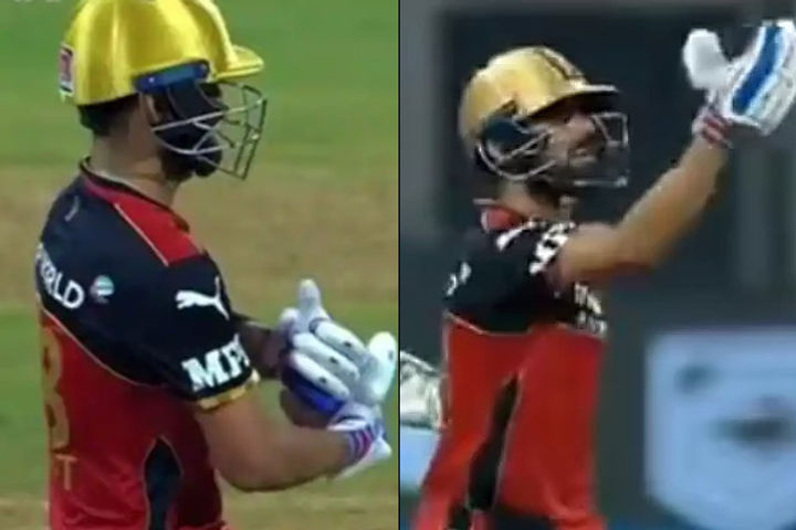 Both Kohli and Padikkal played a pile of eye-catching stroke in what was the biggest opening partnership in the franchise’s history. Although, what was equally eye-catching was how the skipper Kohli chose to celebrate when he reached his fifty. He blew a kiss towards his family, acknowledging his wife and daughter with the bat. He dedicated the knock to his daughter by imitating a baby-sitting gesture.