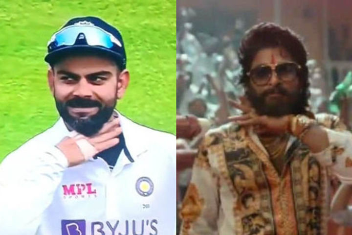 There is no denying that many of cricketers are currently obsessed over Allu Arjun’s Pushpa. From the movie dialogues to its songs, every aspect of the film has become a major hit with fans. Now, a video of Indian stalwart Virat Kohli imitating Allu Arjun’s iconic move from the film has gone viral on social media. The right-handed batter imitated the moves during the Day 3 of first Test match between India and Sri Lanka.