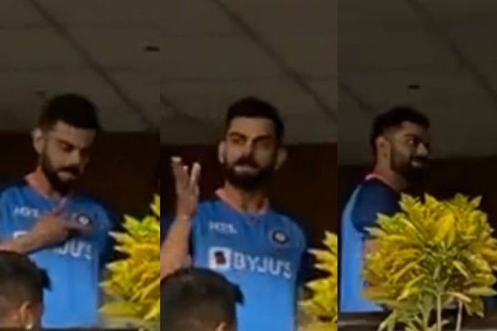 Team India star batter Virat Kohli gave a stunning reaction when fans chanted 'RCB RCB' during the second T20I encounter between India and Australia played at the Vidharbha Cricket Association (VCA) Stadium. In a video posted by a fan on Twitter, Virat can be seen pointing toward the team India official emblem marked on his t-shirt as the crowd can be heard chanting 'RCB RCB'.