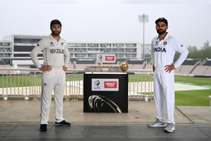 Virat Kohli and Kane Williamson posed with the ICC mace on the eve of the ICC WTC final at the Rose Bowl in Southampton, which starts on June 18. The ICC took to their official Instagram handle to share the picture with fans. Kohli and Williamson were decked up in their jerseys to pose, with the majestic Southampton ground in the backdrop. Both teams will be pumped to win the ICC mace in the inaugural decider of Test supremacy.