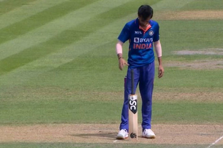 During the England batting innings, Yuzvendra Chahal was seen having a bit of fun on the field as he tried to balance one of the England player’s bats while bowling. During one of his overs, Chahal was seen trying to copy Joe Root’s trick of balancing the bat on the pitch by touching it. Root had left the viewers bewildered by his trick in the first Test against New Zealand last month.