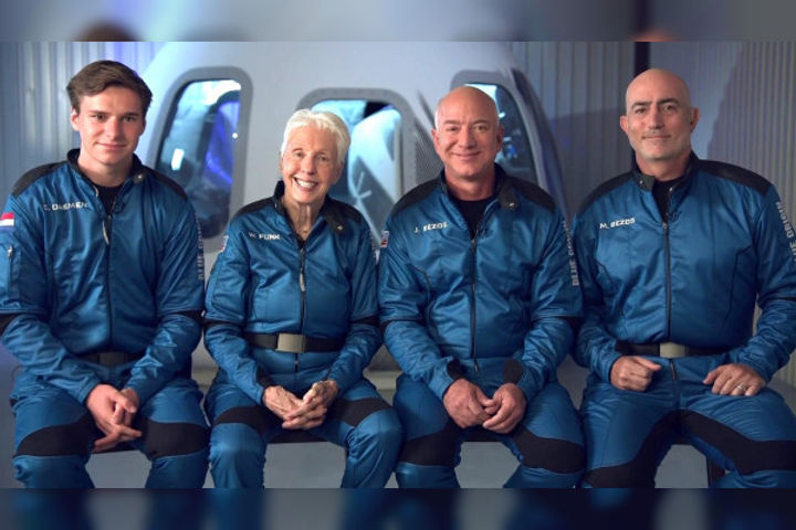 Billionaire Jeff Bezos rocketed into space on the first crewed flight of the New Shepard spacecraft built by his company Blue Origin. Bezos is accompanied by his brother Mark Bezos, 82-year-old pioneer of the space race Wally Funk and 18-year-old student Oliver Daemen of the Netherlands. The launch took place from Bezos' private launch site near Van Horn, Texas and the flight is expected to last 11 minutes.