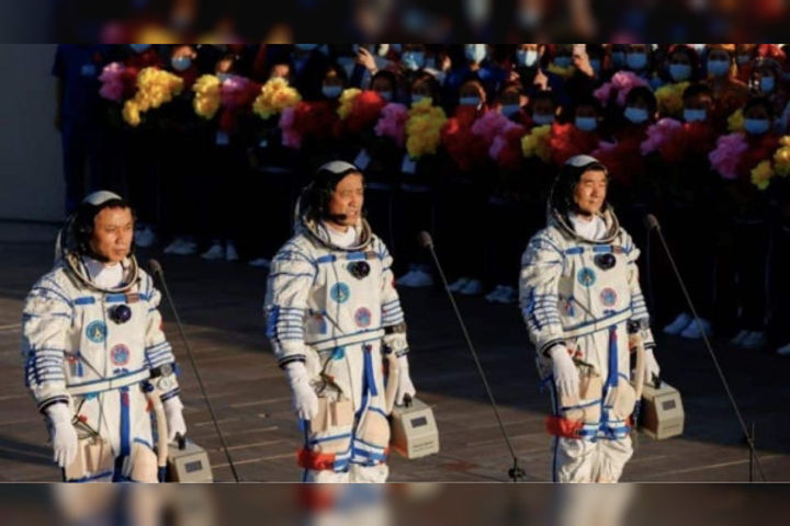 Two astronauts made the first spacewalk on Sunday outside China's new orbital station to work on setting up a 15-meter (50-foot) long robotic arm. Liu Boming and Tang Hongbo were shown by state TV climbing out of the airlock as Earth rolled past below them. The third crew member, commander Nie Haisheng, stayed inside. Their mission comes as the ruling Communist Party celebrates the 100th anniversary of its founding.