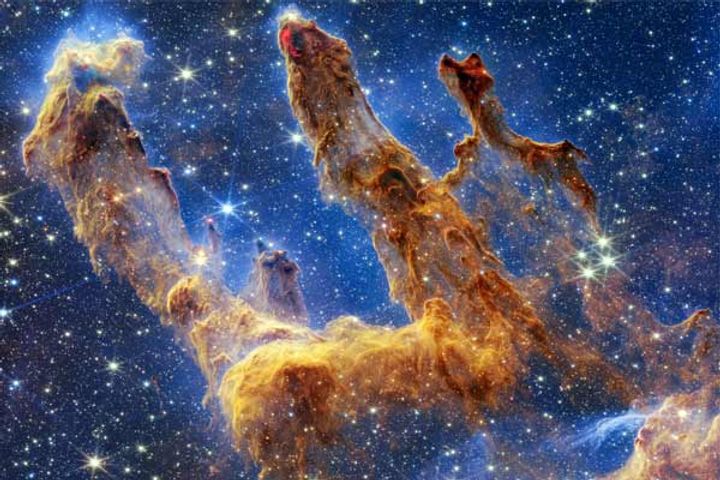 A new image captured by the James Webb Space Telescope (JWST) reveals a fiery cosmic hourglass encapsulating a protostar within a dark cloud. This protostar—labeled L1527—lying at the central point or the neck of the hourglass, is particularly difficult to spot because it is shrouded by gas and dust. It lies in the Taurus star-forming region which is only visible in infrared light.