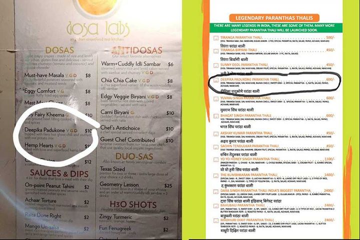 There is this restaurant in Austin, Texas which is selling dosa named after actress Deepika Padukone. It was noticed by a Twitter user @sailee_rk on a menu card, of Dosa Labs. Deepika herself saw the post and replied "What a great way to begin the year…Happy New Year!" Now after this a restaurant in Pune is selling thali on the name of an actress. Even dish named after her song 'Balam pichkari' is being sold.