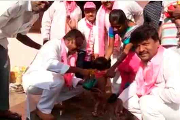 Where one candidate is polishing shoes in Madhya Pradesh to gather votes another candidate in Telangana is washing bum of a baby. Candidates don't want to let go any opportunity to impress voters for their win. A video is going viral on social media in which a TRS man is seen washing backside of a baby and posing for a photo even though the baby was crying. They wanted to show his social service skills to attract voters.