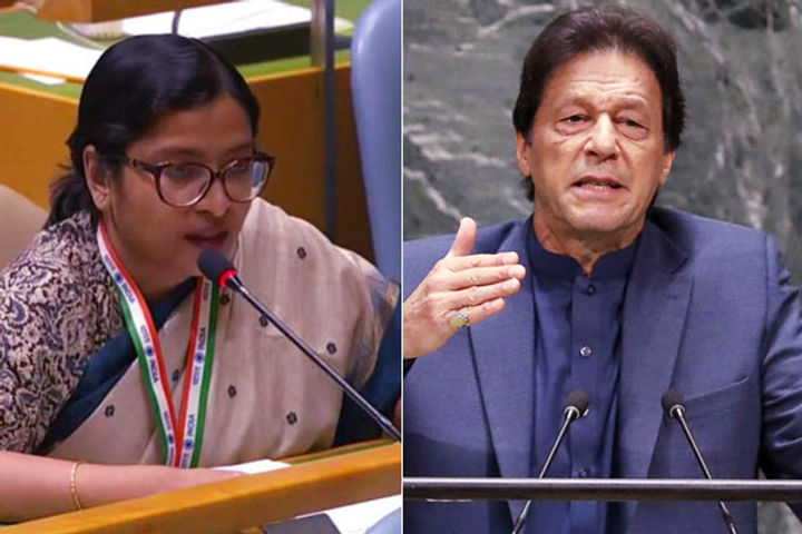 India exercised its right to reply on Saturday, responding to Imran Khan's speech at UNGA on Friday. Vidisha Maitra, First Secretary MEA said that Imran's threat of Nuclear attack is 'brinksmanship' not 'statesmanship'. During his speech on Friday. the Pakistan PM had said that Pak will be left with no choice other than unleashing nuclear devastation if a conventional was is triggered with India, a country 7 times its size.