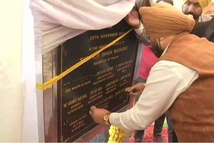 Minister puts tape on CM's name on foundation stone of Kartarpur corridor