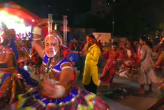 People in Gujarat play Garba wearing Modi mask