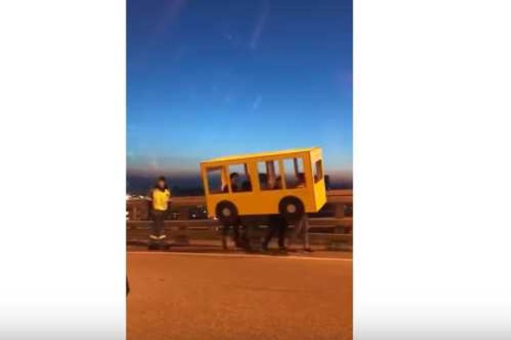 To cross 'vehicle-only' bridge, 4 Russians dressed up as a bus getting viral