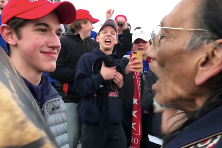 US school apologizes after video of students in Trump hats harassing native American goes viral