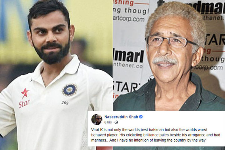 Fans love Virat Kohli for his game and ignore his arrogant behaviour because of his game. Many praise him and many criticize him and actor Naseeruddin Shah is one of them criticizing him for his arrogance. On Monday in a post on Facebook, Shah called Virat world's best player but at the same time, he called him the worlds worst behaved player too. He said his cricketing skills are of no use if he behaves badly.
