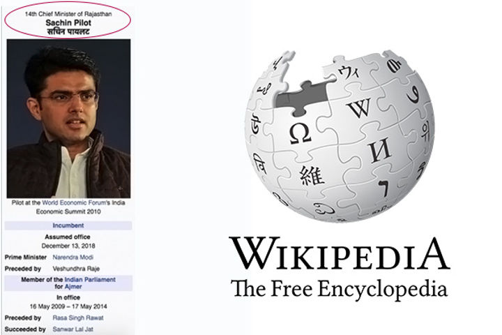 Wikipedia is already calling Sachin Pilot as 14th CM of Rajasthan