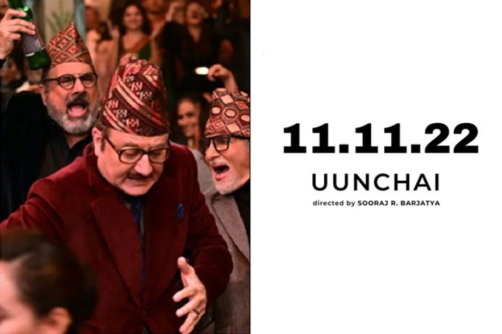 राजश्री प्रोडक्शन की नई फिल्म 'ऊंचाई' की रिलीज़ डेट की घोषणा हो गई है। फिल्म इसी साल 11 नवंबर को सिनेमाघरों में रिलीज़ होगी। इसमें अमिताभ बच्चन लीड रोल में हैं। उनके साथ अनुपम खेर, बोमन ईरानी, नीना गुप्ता, सारिका, नफीसा अली और डैनी डेन्जोंगपा और परिणीति चोपड़ा भी प्रमुख भूमिकाओं में हैं। राजश्री प्रोडक्शन इस फिल्म को महावीर जैन फिल्मस और बॉण्डलेस मीडिया के साथ मिलकर बना रहा है।