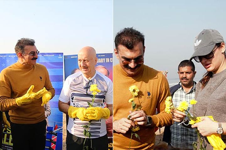 'शिव शास्त्री बलबोआ' के प्रमोशन में बिजी अनुपम ने की वर्सोवा बीच की सफाई