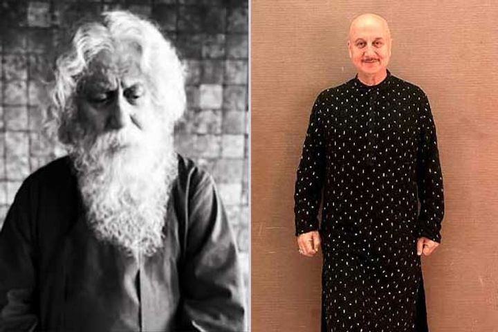 बॉलीवुड अभिनेता अनुपम खेर ने अपनी नई फिल्म का ऐलान किया है। अनुपम खेर इस बार गुरुदेव रबीन्द्रनाथ टैगोर की भूमिका में नजर आने वाले हैं। उन्होंने फिल्म से अपना एक लुक भी शेयर किया है। इस पोस्टर में उनके बाल और दाढ़ी बढ़े हुए हैं। वह पूरी तरह गुरुदेव के रूप में नजर आ रहे हैं। फैंस भी अनुपम खेर के इस लुक की जमकर तारीफ कर रहे हैं।