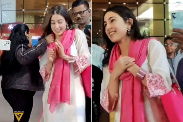 विरल भयानी ने सारा अली खान का एक वीडियो शेयर किया। जिसमें एक महिला पहले तो सारा से हाथ मिलाती है और उसके बाद उनके गालों को छूना चाहती है। पल भर के लिए सारा असहज हो जाती हैं। हालांकि, महिला अपनी कोशिश में नाकाम हो जाती है। ये वाकया देखकर वहां मौजूद पैपराजी भी हैरान हुए। सारा तब भी कूल दिखीं। वीडियो पर अब फैंस प्रतिक्रिया दे रहे हैं।