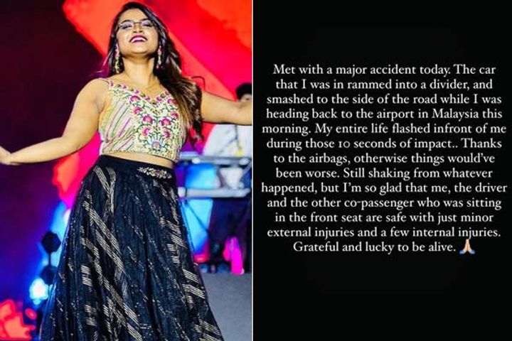 'पोन्नियिन सेल्वन 2' की सिंगर रक्षिता सुरेश की कार का मलेशिया में एक्सीडेंट, बाल-बाल बचीं