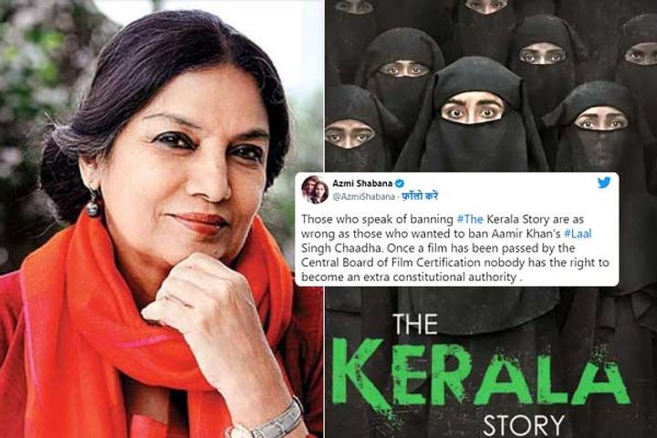 शबाना आजमी ने 'द केरल स्टोरी' को लेकर ट्वीट किया। उन्होंने लिखा कि- "जो लोग द केरल स्टोरी पर रोक लगाने की बात करते हैं, वे उतने ही गलत है, जितने कि वह आमिर खान की लाल सिंह चड्ढा पर बैन लगाना चाहते थे। एक बार किसी फिल्म को सेंसर बोर्ड ऑफ फिल्म सर्टिफिकेशन से सर्टिफिकेट मिल जाता है तो फिर किसी दूसरे कॉन्स्टिट्यूशन अथॉरिटी का कोई रोल नहीं रहता।"