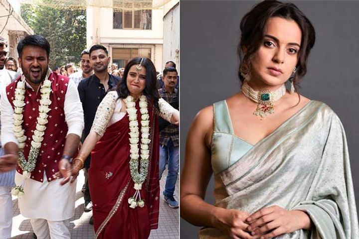 स्वरा भास्कर ने फहद अहमद के साथ कोर्ट मैरिज करने के बाद कुछ करीबी रिश्तेदारों और दोस्तों को बुलाकर एक छोटी पार्टी रखी। उन्होंने शादी की फोटोज शेयर की तो एक्ट्रेस कंगना रनौत ने उनके ट्वीट पर कमेंट करते हुए लिखा, 'आप दोनों खुश दिख रहे हैं। ऐसे ही आप पर भगवान की कृपा बनी रहे। शादी हमेशा दिलों में होती है बाकी जो भी है वो सब फॉर्मेलिटीज हैं।'