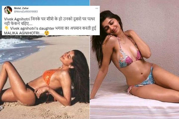 शाहरुख खान स्टारर पठान में दीपिका पादुकोण की कथित भगवा रंग की बिकिनी को लेकर डायरेक्टर विवेक अग्निहोत्री ने भी बयानबाजी की थी। अब ट्रोलर्स ने उनकी बेटी की एक तस्वीर शेयर की, जिसमें मलाइका अग्निहोत्री बिकनी में हैं। कथित तौर पर उन्होंने भगवा रंग की बिकनी पहनी है। अब लोग कह रहे हैं कि विवेक पहले अपनी बेटी की तरफ देखें, उसके बाद फिल्म के बारे में कुछ कहें।