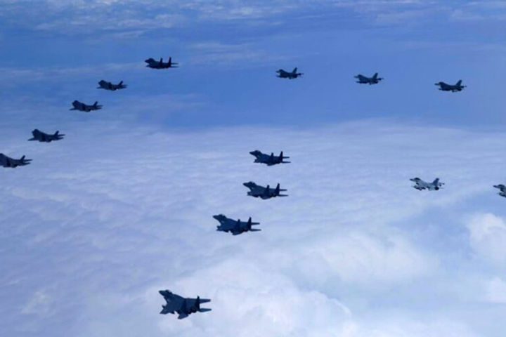 उत्तर कोरिया से तनाव के बीच दक्षिण कोरियाई सेना और अमेरिकी बल के 20 लड़ाकू जेट ने मंगलवार को दक्षिण कोरिया के पश्चिमी तट पर चक्कर लगाए। इन लड़ाकू विमानों की उड़ान के पीछे यह मकसद रहा कि अगर उत्तर की ओर से कोई प्रतिक्रिया आयी तो जवाबी कार्रवाई की जाएगी। दक्षिण कोरिया के ज्वाइंट चीफ्स आफ स्टाफ ने कहा कि हवाई प्रदर्शन में 16 दक्षिण कोरियाई विमान शामिल थे।