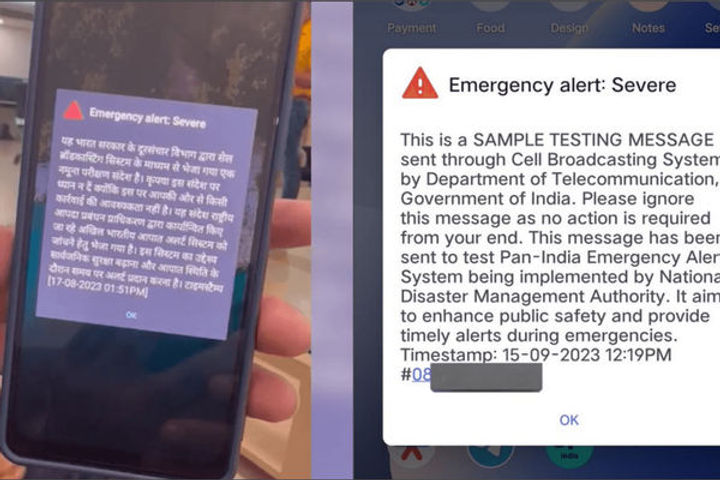 कई स्मार्टफोन यूजर्स को आज उनके फोन पर फ्लैश और तेज बीप के साथ एक अलर्ट मैसेज प्राप्त हुआ। इमरजेंसी अलर्ट सिस्टम का परीक्षण करने के लिए यह अलर्ट भारत सरकार के दूरसंचार विभाग (DoT) द्वारा सेल ब्रॉडकास्टिंग सिस्टम के माध्यम से भेजा गया था। कृपया इस संदेश को अनदेखा करें, क्योंकि आपकी ओर से किसी कार्रवाई की आवश्यकता नहीं है। इसका उद्देश्य सार्वजनिक सुरक्षा बढ़ाना और आपात स्थिति के दौरान समय पर अलर्ट प्रदान करना है।