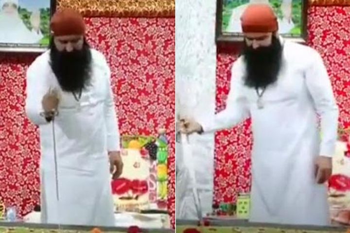 पैरोल पर बाहर आए गुरमीत राम रहीम ने तलवार से काटा केक