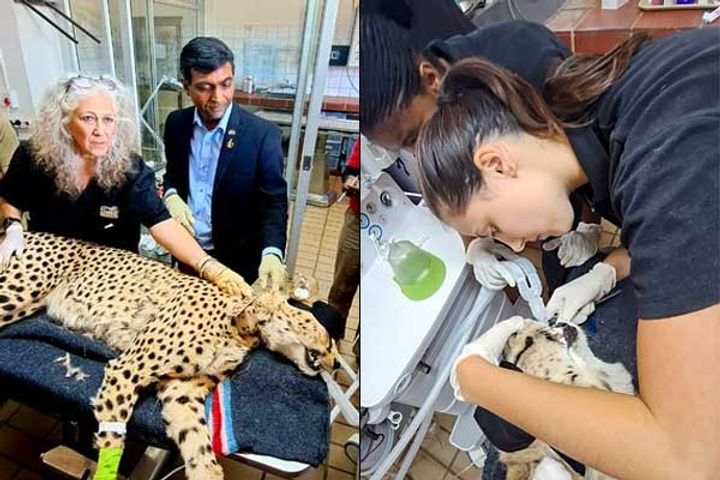 नामीबिया से मध्य प्रदेश के कुनो नेशनल पार्क लाए जा रहे चीतों का हेल्थ चेकअप हुआ। चेकअप नामीबिया में चीता कंजरवेशन के इंटरनेशनल एक्सपर्ट्स की देखरेख में हुआ। चीतों को 3 हेल्थ चेकअप से गुजरना पड़ा। भारत में 70 साल बाद फिर से चीते दिखाई देंगे। भारत आने वाले 8 चीते (4 नर और 4 मादा) इसी हफ्ते कुनो पहुंच जाएंगे। आधिकारिक तौर पर तारीख की घोषणा नहीं हुई है।
