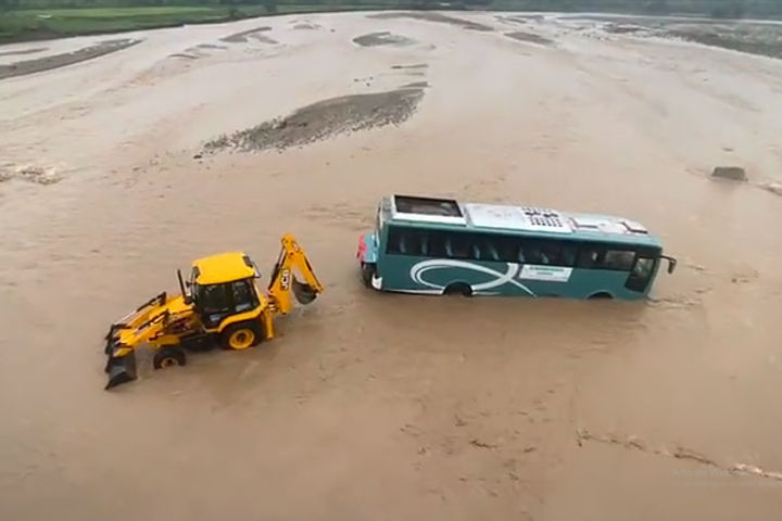 नेपाल से उत्तराखंड के हरिद्वार आ रही मैत्री बस सेवा हरिद्वार-बिजनौर सीमा पर नदी का जलस्तर बढ़ने से पानी में फंस गई। मीडिया रिपोर्ट्स के मुताबिक, कोटावाली नदी का जलस्तर अचानक बढ़ने से बस पानी में फंसी। इस दौरान बस में 53 यात्री सवार थे। बस फंसने पर यात्रियों के बीच चीख-पुकार मच गई। तुरंत पुलिस और राज्य आपदा प्रतिक्रिया बल (SDRF) को सूचना दी गई, जिन्होंने मौके पर पहुंचकर यात्रियों को बचाया।
