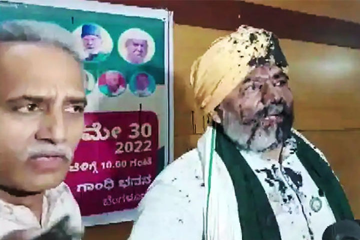 कर्नाटक के बेंगलुरु में किसान नेता राकेश टिकैत पर एक शख्स ने स्याही फेंक दी। यह घटना बेंगलुरु प्रेस क्लब की है। यहां वे प्रेस कॉन्फ्रेंस कर रहे थे, तभी एक शख्स ने स्याही फेंक दी। इसके बाद राकेश के समर्थकों ने स्याही फेंकने वाले शख्स को पकड़ लिया। स्याही फेंकने वाले शख्स की अभी पहचान नहीं हो सकी। ये स्याही स्थानीय किसान नेता के चंद्रशेखर के समर्थकों ने फेंकी।
