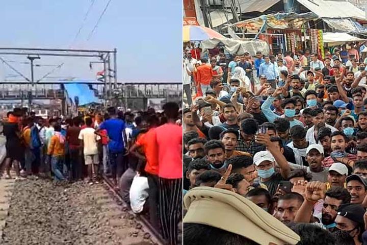 सेना में भर्ती की केंद्र सरकार की नई स्कीम 'अग्निपथ' बिहार के युवाओं को रास नहीं आई। रक्षा मंत्री राजनाथ सिंह के 'अग्निपथ योजना' की घोषणा करने के 24 घंटे बाद ही बुधवार को राज्य के कई हिस्सों में जमकर बवाल हुआ। प्रदेश के कई जिलों में कहीं आगजनी, पथराव और तोड़फोड़ हुई और छात्रों ने रेलवे ट्रैक ही जाम कर दिया है। जिससे घंटों तक ट्रेनें प्रभावित रही हैं।