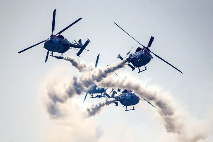 सारंग टीम ने एयर फेस्ट 2022 के रिहर्सल के दौरान करतब दिखाए