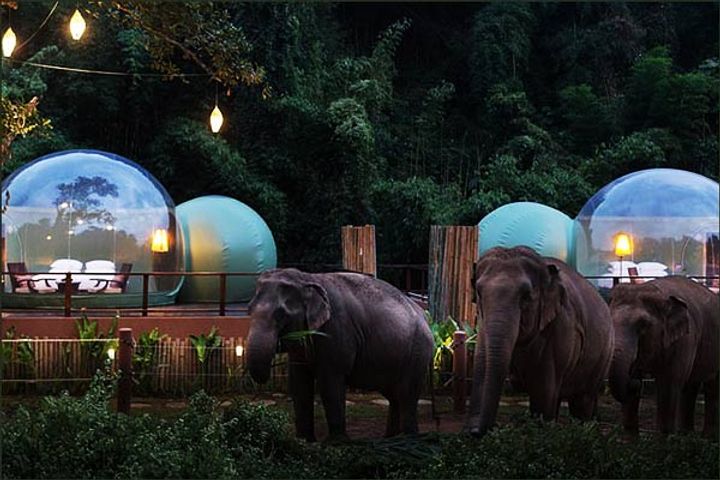 उत्तरी थाईलैंड के चियांग सायेन में अनंतरा गोल्डन ट्राइंगल एलिफेंट कैंप एंड रिजॉर्ट में पारदर्शी पॉड्स बनाए गए हैं। इन्हें जंगल बबल नाम दिया गया है। बता दें यहां से जंगल के जानवरों को उनकी प्राकृतिक स्थिति में देखा जा सकता हैं। इसमें एक किंग-साइज़ बेड, एक लिविंग रूम है। इन वातानुकूलित पॉड्स में ठहरने के लिए दो लोगों को हर रात के लिए करीब 35,000 रुपए खर्च करने होंगे।