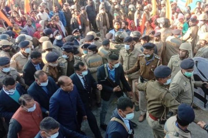 हिमाचल प्रदेश में सवर्ण आयोग के गठन की मांग को लेकर धर्मशाला में शीत सत्र के पहले दिन विधानसभा परिसर तपोवन से करीब एक किलोमीटर पीछे जोरावर स्टेडियम में जमकर बवाल हो रहा है। विधानसभा परिसर का घेराव करने की कोशिश की गई है, प्रदर्शनकारियों ने बैरिकेड्स तोड़ दिए और तपोवन विधानसभा परिसर के बाहर पहुंच गए हैं। डीजीपी और डीसी की गाड़ियों का भी घेराव कर लिया गया है।
