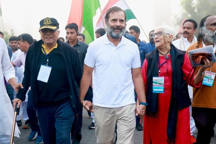 'भारत जोड़ो यात्रा': राहुल गांधी संग पैदल चले पूर्व नौसेना प्रमुख एडमिरल रामदास और उनकी पत्नी