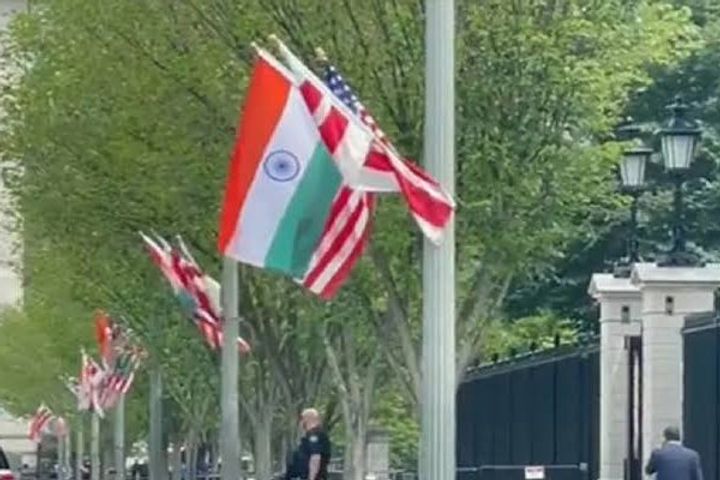 व्हाइट हाउस के बाहर एक साथ लहराया भारत और अमेरिका का झंडा
