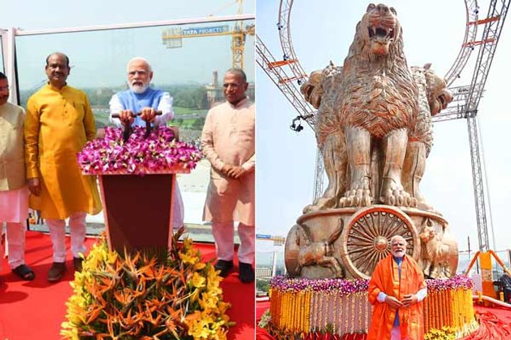 पीएम मोदी ने किया साढ़े 6 मीटर लंबे और 9500 किलो वजनी अशोक चिन्ह का अनावरण