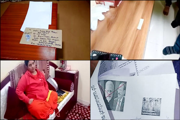 भोपाल से बीजेपी सांसद साध्वी प्रज्ञा सिंह ठाकुर को उर्दू में लिखी चिट्ठी मिली। जिसमें पाउडर के साथ-साथ मोदी-शाह-डोभाल की फोटो भी मिली। फोटो पर क्रॉस किया गया है। फॉरेंसिक टीम प्रज्ञा के घर पर मामले की जांच कर रही है। साध्वी ने ही चिट्ठी को संदिग्ध मानते हुए पुलिस को सूचना दी थी। पुलिस ने चिट्ठी एफएसएल टीम को सौंपी, पाउडर और चिट्ठी को जांच के लिए भेजा गया।