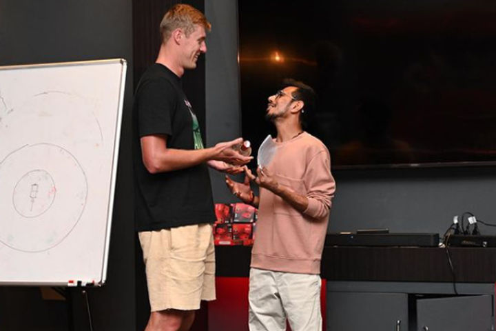 रॉयल चैलेंजर्स बैंगलोर के दिग्गज स्पिनर युजवेंद्र चहल ने इंस्टाग्राम पर एक फोटो शेयर की है. इस तस्वीर में चहल के साथ काइल जेमिसन है और वो काइल को हिंदी भाषा सीखते हुए नजर आते है. उन्होंने कैप्शन में लिखा, ‘मार्टिन गुप्टिल के बाद काइल जेमिसन मुझ से हिंदी सीखना चाहते है’. इस पोस्ट पर फैंस चहल का मजाक उड़ा रहे हैं. इस पोस्ट पर दर्शकों ने चुटकी लेते हुए कहा कि कुछ अभद्र भाषा मत सीखा देना.