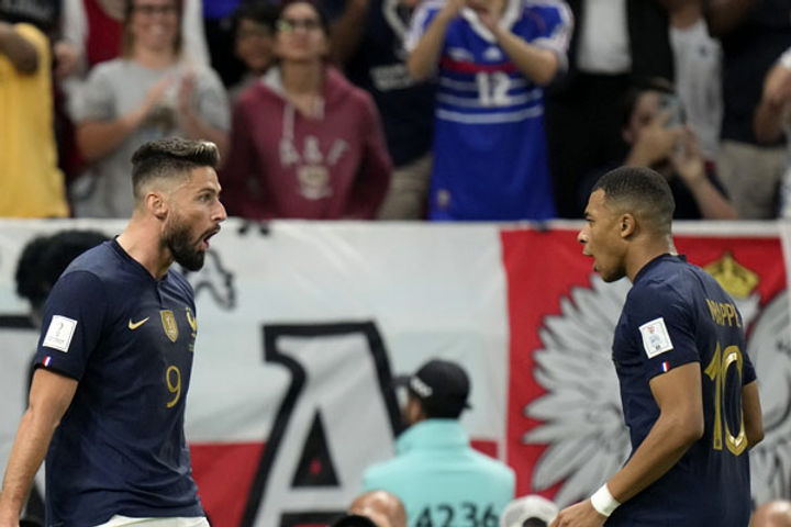 फ्रांस ने कतर में फीफा वर्ल्ड कप के तीसरे क्वार्टर फाइनल में पोलैंड को 3-1 से हराया। युवा स्टार किलियन एम्बाप्पे ने 74वें और 91वें मिनट पर गोल दागे। वहीं, अनुभवी ओलिवर जिरूड ने 44वें मिनट में गोल किया। वह फ्रांस के लिए सर्वाधिक 52 गोल करने वाले खिलाड़ी बने। पोलैंड की ओर से एकमात्र गोल इंजरी टाइम में मिली पेनाल्टी पर कप्तान रॉबर्ट लेवांडोवस्की 99वें मिनट पर गोल दागा।