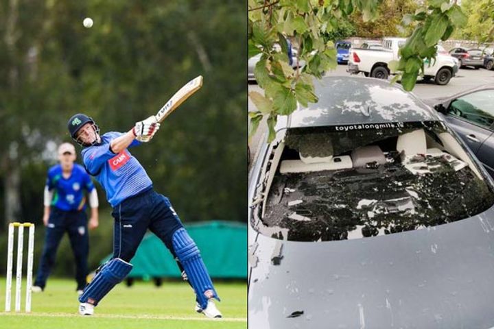आयरलैंड के बल्लेबाज ने जड़ा ऐसा छक्का, तोड़ा अपनी ही कार का शीशा