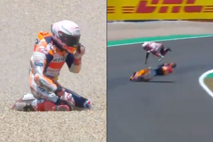स्पेनिश मोटोजीपी रेस में हादसा, चैंपियन मार्क मारक्वेज घायल, वीडियो आया सामने