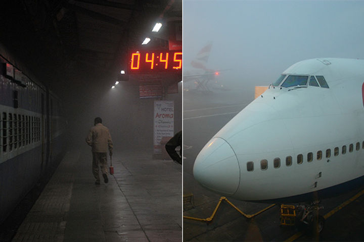 कोहरे ने रोकी ट्रेन और विमानों की रफ्तार, 55 ट्रेनें और 6 उड़ानें रद्द