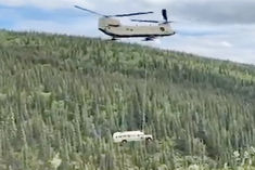 अमेरिका में हेलीकॉप्टर के जरिए किया गया बस को एयरलिफ्ट, वीडियो वायरल