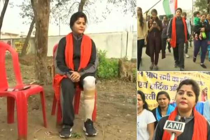 छत्तीसगढ़ के रायपुर की रहने वाली एक महिला ने ऐसा हौसला दिखाया कि आप उन्हें सलाम करने से खुद को नहीं रोक पाएंगे। उनके इस कार्य से वे लोग प्रेरणा ले सकते हैं जो कुछ करने के लिए परिस्थितियों का रोना रोते रहते हैं। बता दें रायपुर की अनुपमा त्रिपाठी नाम की दिव्यांग महिला ने 10 किमी. पैदल चलकर लोगों का ध्यान अपनी ओर खींचा। उन्होंने आज पैर से विकलांग होने के बावजूद 10 किमी. पदयात्रा में शामिल हुईं और उसे 2 घंटे में पूरा भी किया।