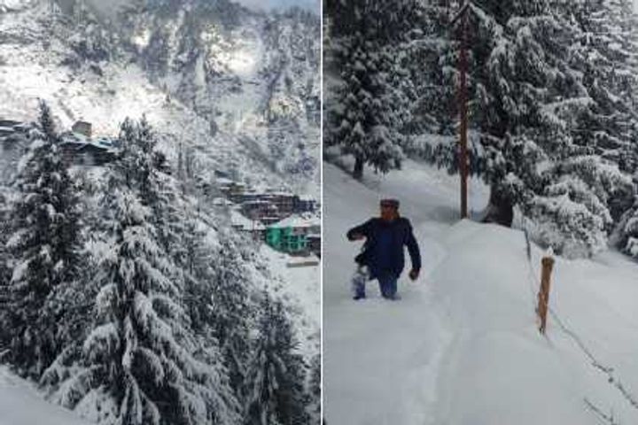 कुल्लू: ऐतिहासिक गांव मलाणा ने जब ओढ़ी सफेद चादर, चांदी सी चमक उठी घाटी