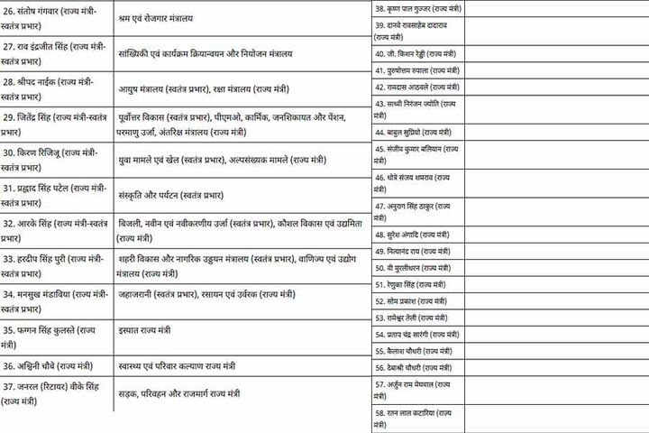 कुल 25 कैबिनेट मंत्री, राज्यमंत्रियों और स्वतंत्र प्रभारियों की लिस्ट जारी